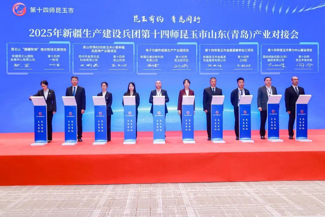 國綜綠能控股(北京)集團(tuán)有限公司(右二)與新疆生產(chǎn)建設(shè)兵團(tuán)第十四師昆玉市商務(wù)局(右一)簽署協(xié)議