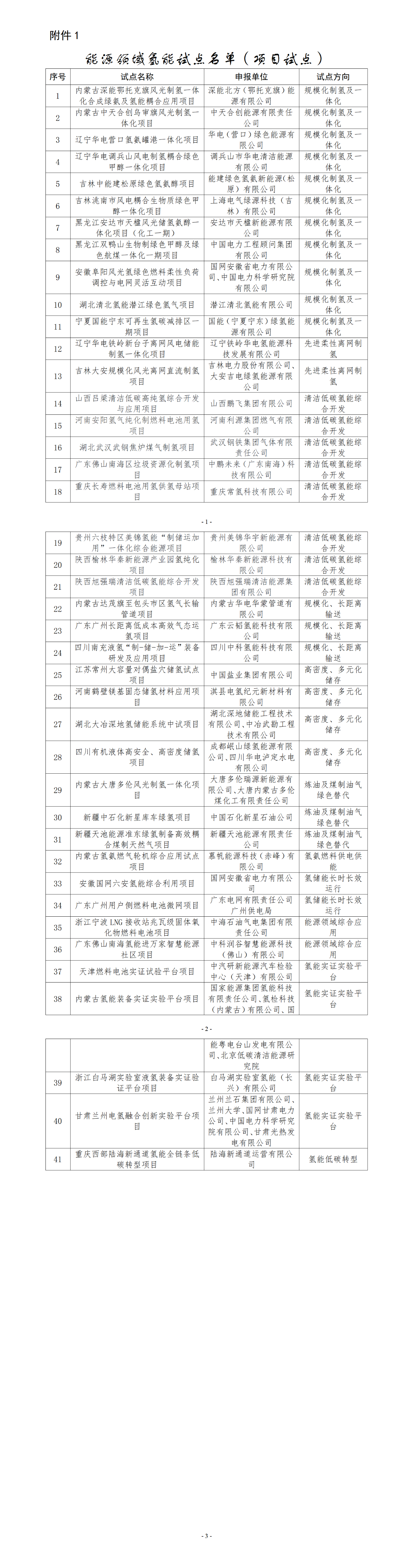 1.能源領(lǐng)域氫能試點名單(項目試點)