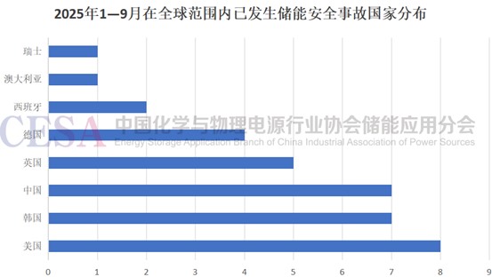 除卻報(bào)告所提出的共性問(wèn)題,從數(shù)據(jù)也可窺得現(xiàn)階段全球儲(chǔ)能行業(yè)所面臨的難點(diǎn)。據(jù)CESA儲(chǔ)能應(yīng)用分會(huì)產(chǎn)業(yè)數(shù)據(jù)庫(kù)不完全統(tǒng)計(jì),截止2025年1—9月在全球范圍內(nèi)已發(fā)生儲(chǔ)能相關(guān)事故35起,涉及美國(guó)、中國(guó)、韓國(guó)、英國(guó)、德國(guó)、西班牙、澳大利亞等多個(gè)重要儲(chǔ)能市場(chǎng)。