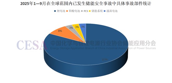 分析具體的事故部件我們可以發(fā)現(xiàn),在2025年1-9月全球范圍內(nèi)發(fā)生的35起儲(chǔ)能安全事故中,有29起的事故部件為鋰電池,