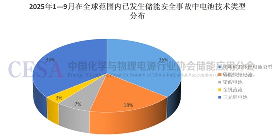 從電池技術(shù)類(lèi)型分布來(lái)看,多元化特征顯著,其中應(yīng)用三元鋰電池技術(shù)的儲(chǔ)能安全事故10起,應(yīng)用磷酸鐵鋰電池技術(shù)的儲(chǔ)能安全事故5起,應(yīng)用鉛酸電池技術(shù)的儲(chǔ)能安全事故2起,應(yīng)用全釩液流電池技術(shù)的儲(chǔ)能安全事故1起,未明確具體鋰電池類(lèi)型的儲(chǔ)能安全事故10起。
