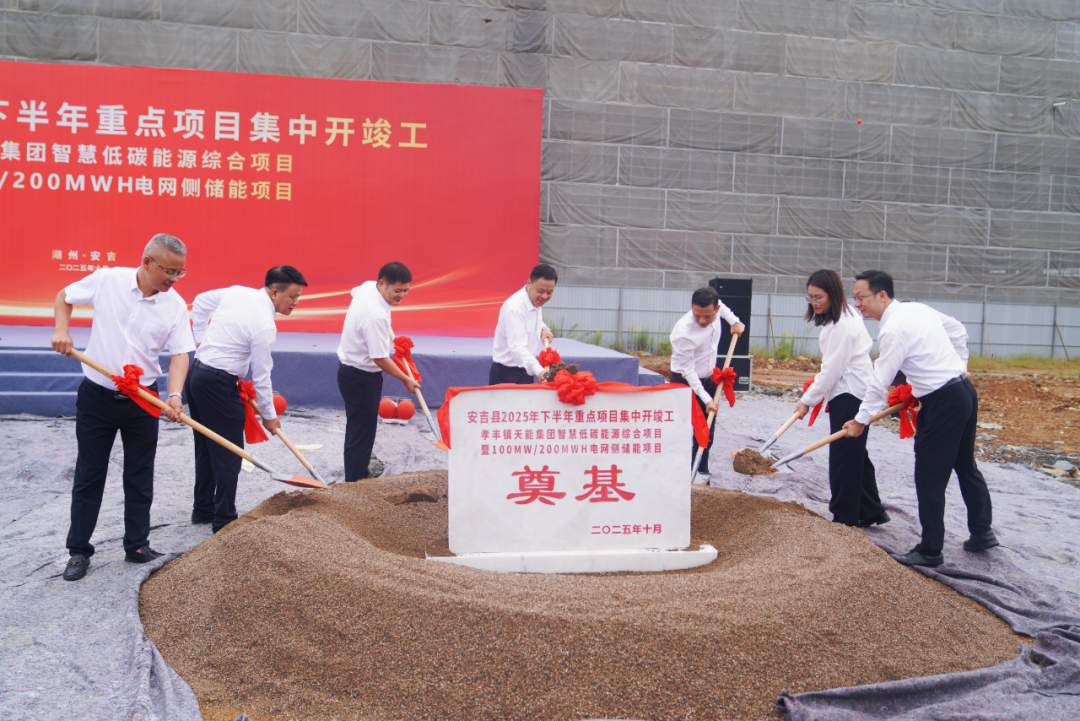 在青山綠水間,天能孝豐智慧低碳綜合能源項目正式破土動工。這座規(guī)劃100MW/200MWh的電網側儲能電站,如一座現(xiàn)代“能量方舟”,將在這片熱土上守護萬家燈火。天能控股集團副董事長周建中等出席儀式,共同揮鍬培土為項目奠基。
