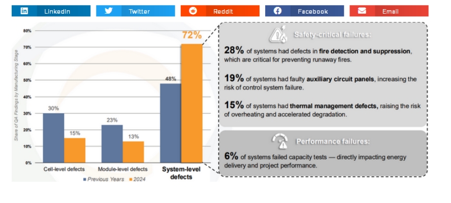 ·集成階段的缺陷是電池儲能項(xiàng)目中最常見的質(zhì)量風(fēng)險(xiǎn)。