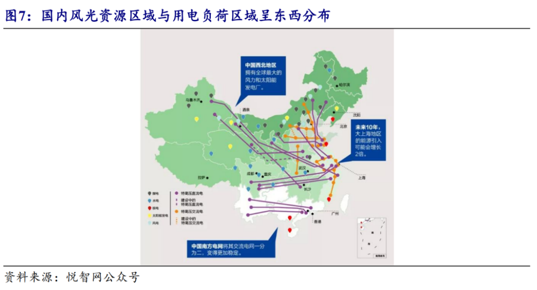 一方面,風電、光伏為代表的新能源裝機量與發(fā)電量占比持續(xù)提升。但風光資源與用電負荷的逆向分布給國內電網帶來巨大挑戰(zhàn)。