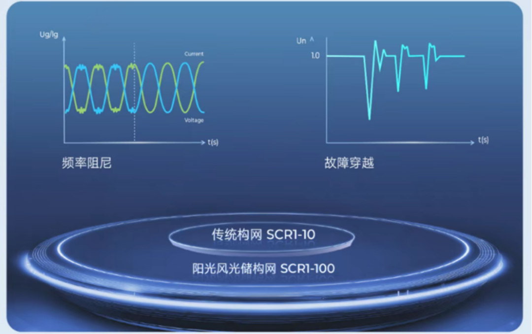 在多個實地項目的測試中,陽光電源的構網技術都具備短路比1到100的耐受能力以及具備大于6次的連續(xù)高低電壓穿越能力,讓構網系統(tǒng)具備在各種惡劣環(huán)境下自我調節(jié)、自我穩(wěn)定的能力。