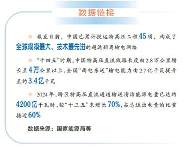 ——2024年,跨區(qū)特高壓直流通道輸送清潔能源電量占總送出電量的比重接近60%