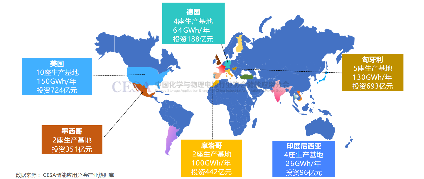 在產(chǎn)能建設(shè)方面,據(jù)CESA儲(chǔ)能應(yīng)用分會(huì)數(shù)據(jù)庫(kù)統(tǒng)計(jì),截至2025年8月底,寧德時(shí)代、億緯鋰能、國(guó)軒高科、遠(yuǎn)景動(dòng)力等33家中國(guó)企業(yè)在海外共投產(chǎn)+在建+規(guī)劃了73座電池/儲(chǔ)能系統(tǒng)集成生產(chǎn)制造基地,產(chǎn)能達(dá)801GWh,其中41個(gè)項(xiàng)目已披露投資金額,總計(jì)超3871億元,主要集中在美國(guó)、匈牙利、摩洛哥、西班牙、德國(guó)、東南亞等國(guó)家。