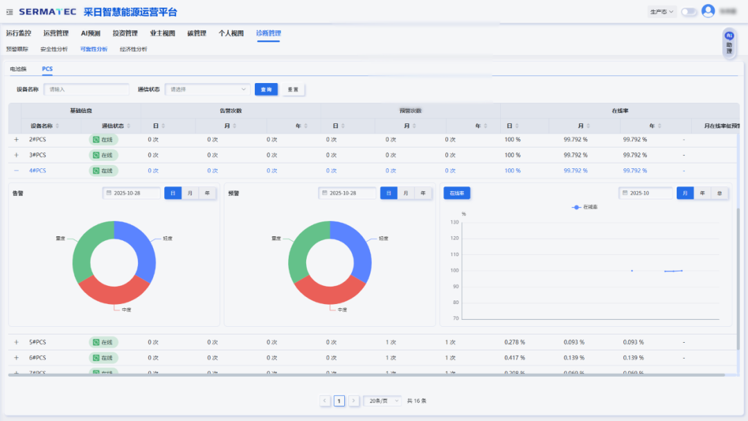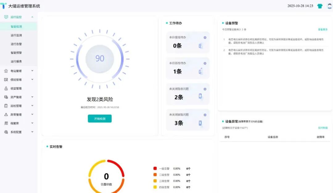 在安全保障及高效運(yùn)行維度,平臺(tái)構(gòu)筑了行業(yè)領(lǐng)先的資產(chǎn)安全防護(hù)體系,依托實(shí)時(shí)監(jiān)測(cè)與AI大數(shù)據(jù)分析能力,提前30分鐘精準(zhǔn)識(shí)別熱失控、容量衰減等潛在風(fēng)險(xiǎn),實(shí)現(xiàn)無(wú)損預(yù)警。所有預(yù)警信號(hào)直連運(yùn)維系統(tǒng),形成“采集-監(jiān)測(cè)-診斷-預(yù)警-運(yùn)維-反饋”的高效閉環(huán)管理機(jī)制,在全面保障人員與資產(chǎn)安全、延長(zhǎng)設(shè)備壽命的同時(shí),憑借精準(zhǔn)定位與快速響應(yīng),顯著提升運(yùn)維效率、降低運(yùn)營(yíng)成本,最終達(dá)成資產(chǎn)安全與經(jīng)濟(jì)效益的協(xié)同最優(yōu)。