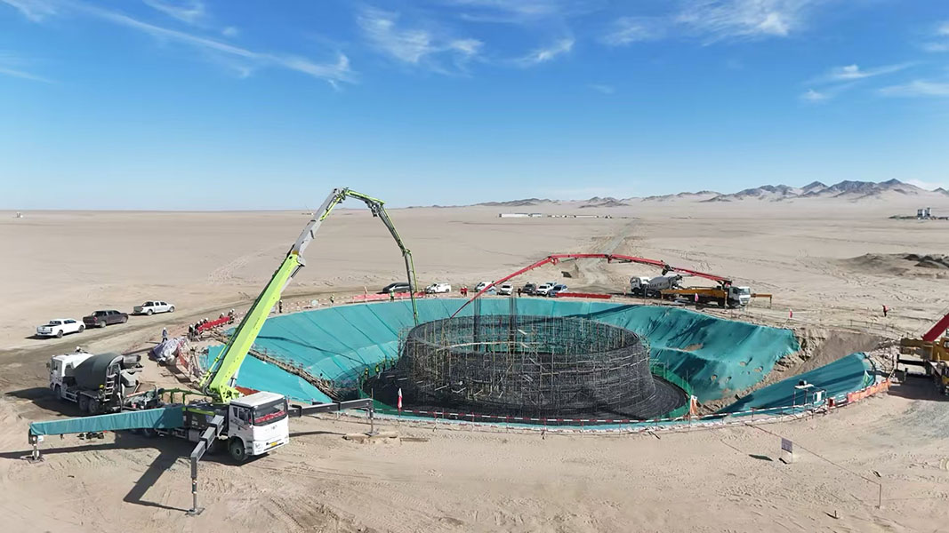 作為全球單機規(guī)模最大、鏡場反射面積最大、儲能規(guī)模最大、年設(shè)計發(fā)電量最高的塔式光熱發(fā)電項目。該項目位于青藏高原地區(qū)的青海省海西州格爾木市,自開工以來,山東電建一公司格爾木光熱項目團(tuán)隊科學(xué)組織、統(tǒng)籌策劃,堅持“一切工作到項目、一切聚焦干項目”,面對高海拔、強風(fēng)力、晝夜溫差大等不利因素,強化資源配置,優(yōu)化施工方案,做好安全技術(shù)交底、施工質(zhì)量控制和各工序驗收等,確保了澆筑工作的順利進(jìn)行。截至目前,項目已基本完成臨時設(shè)施建設(shè),2號、3號吸熱塔基礎(chǔ)鋼筋綁扎及組裝車間基礎(chǔ)施工正在同步推進(jìn)。