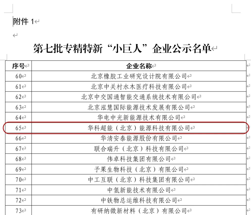 中國(guó)儲(chǔ)能網(wǎng)訊:近日,國(guó)家工業(yè)和信息化部對(duì)外發(fā)布第七批國(guó)家級(jí)專精特新“小巨人”企業(yè)公示名單,中儲(chǔ)國(guó)能控股子公司華科超能(北京)能源科技有限公司憑借在壓縮空氣儲(chǔ)能領(lǐng)域的創(chuàng)新引領(lǐng),成功入選。這是繼國(guó)家高新技術(shù)企業(yè)、北京市專精特新企業(yè)、中關(guān)村前沿技術(shù)企業(yè)后,公司在科技創(chuàng)新、產(chǎn)業(yè)發(fā)展方面再獲國(guó)家權(quán)威認(rèn)證的重要標(biāo)志,代表了公司實(shí)力位列我國(guó)科創(chuàng)企業(yè)第一方陣,是國(guó)家優(yōu)質(zhì)中小企業(yè)的“排頭兵”。