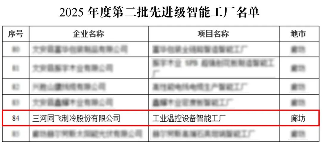 中國儲(chǔ)能網(wǎng)訊:近日,河北省工業(yè)和信息化廳等六部門聯(lián)合開展的2025年度智能工廠梯度培育行動(dòng)認(rèn)定結(jié)果正式公布,三河同飛制冷股份有限公司(以下簡稱“同飛股份”)憑借在數(shù)字化轉(zhuǎn)型、智能化升級(jí)領(lǐng)域的先進(jìn)經(jīng)驗(yàn),成功獲評(píng)工業(yè)溫控設(shè)備智能工廠,標(biāo)志著公司智能制造水平達(dá)到國內(nèi)溫控行業(yè)先進(jìn)標(biāo)準(zhǔn),邁入高質(zhì)量發(fā)展新階段。