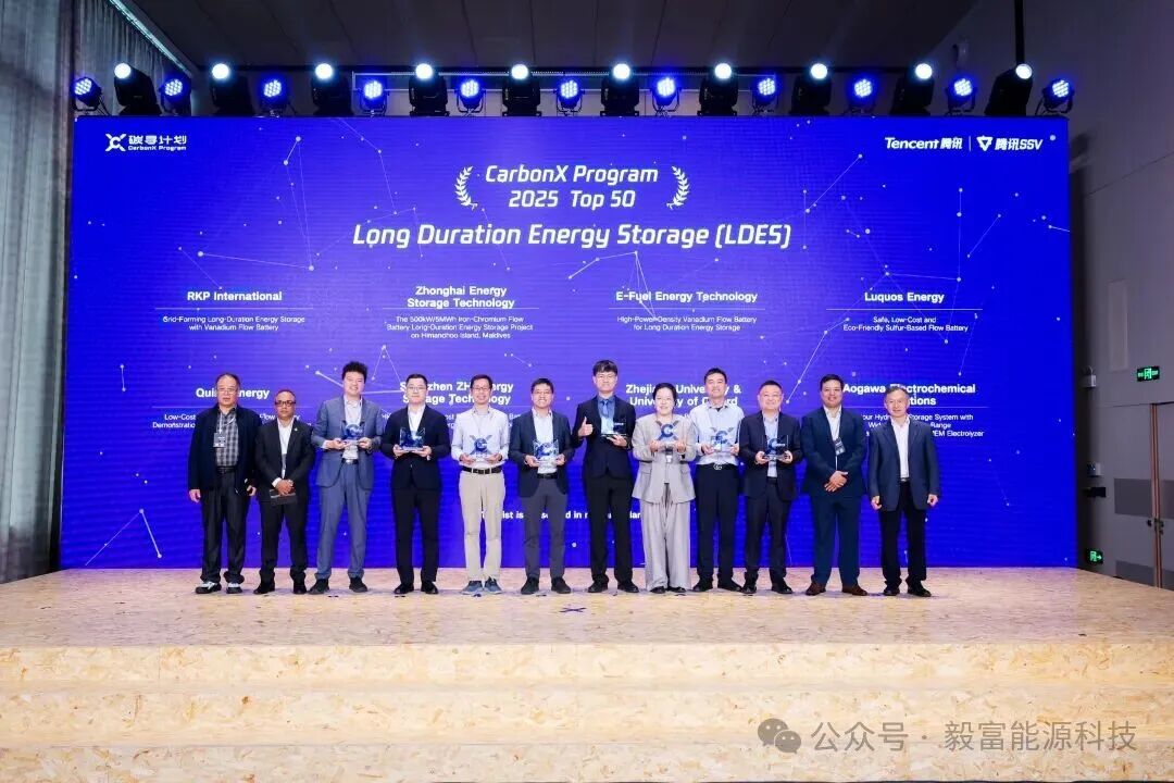 今天(10月29日)上午,由騰訊發(fā)起的全球性「碳尋計劃2.0」在深圳舉辦TOP50頒獎典禮,來自55個國家和地區(qū)的660個項目參與競選,毅富能源憑借全釩液流電池儲能系統(tǒng)技術解決方案,從全球數百個創(chuàng)新項目中脫穎而出,成功入選全球TOP50!
