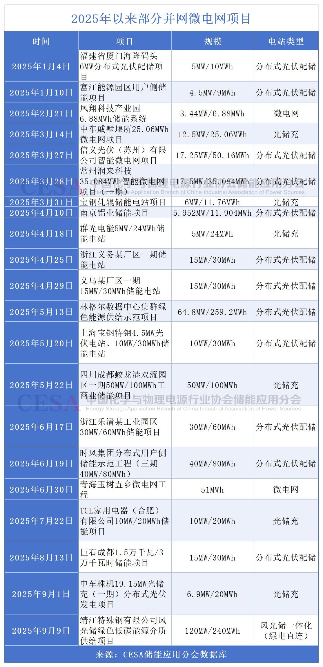 據(jù)CESA儲(chǔ)能應(yīng)用分會(huì)不完全統(tǒng)計(jì),2025年1-9月,共有包括分布式光伏配儲(chǔ)、光儲(chǔ)充、光儲(chǔ)充一體化等場(chǎng)景221個(gè)微電網(wǎng)項(xiàng)目并網(wǎng),規(guī)??傆?jì)718.49MW/1632.5MWh。