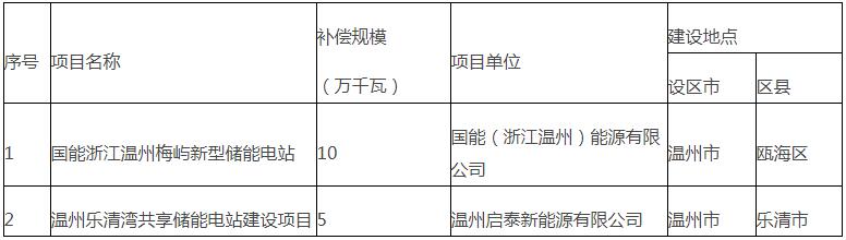 溫州市發(fā)展改革委關(guān)于公示溫州市電網(wǎng)側(cè)新型儲(chǔ)能容量補(bǔ)償項(xiàng)目清單的通知