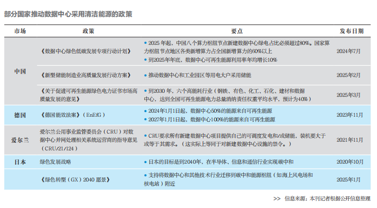 全球算力綠色化約束政策逐漸收緊。德國(guó)《能源效率法案》提出針對(duì)電源使用效率(PUE)和余熱回收的指標(biāo)體系,要求數(shù)據(jù)中心從2024年開(kāi)始至少50%的用電來(lái)自可再生能源,從2027年開(kāi)始用電100%來(lái)自可再生能源。日本在半導(dǎo)體領(lǐng)域?qū)嵤┬阅芄谋葟?qiáng)制標(biāo)準(zhǔn),要求2025年后生產(chǎn)的AI加速芯片每瓦特算力提升不低于15%。愛(ài)爾蘭也制定了新建數(shù)據(jù)中心的相關(guān)禁令。歐盟通過(guò)碳邊境調(diào)節(jié)機(jī)制(CBAM)將數(shù)字服務(wù)碳排放納入核算,倒逼亞馬遜、微軟等出口企業(yè)購(gòu)買(mǎi)綠電,提前完成100%綠電轉(zhuǎn)型。