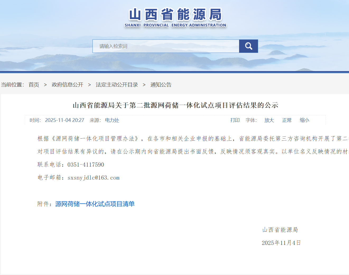 中國(guó)儲(chǔ)能網(wǎng)訊:11月4日,山西省能源局發(fā)布第二批源網(wǎng)荷儲(chǔ)一體化試點(diǎn)項(xiàng)目評(píng)估結(jié)果的公示。