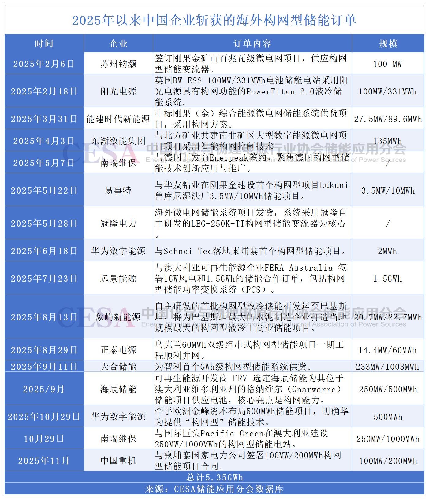 15家企業(yè)斬獲16個(gè)構(gòu)網(wǎng)型儲(chǔ)能海外訂單