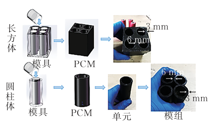 針對不同封裝形式的電池,現(xiàn)有研究開發(fā)了不同形狀的阻隔材料。圓柱形電池僅通過電池間接觸的軸線傳遞熱量,且不易固定,因此研究大多采用模具澆注法,將材料制備后澆注到方塊狀或套管狀模具中定型。方形和軟包電池具有較大的傳熱平面,且容易固定,因此大多采用阻隔材料和電池間隔排布,通過材料與電池的緊密接觸,最大限度地阻隔熱量。