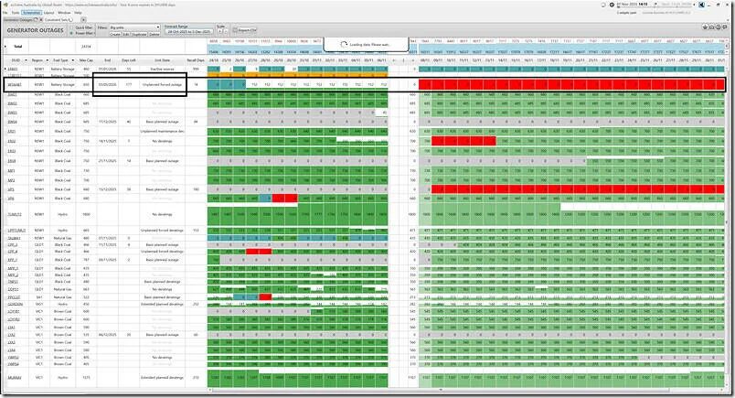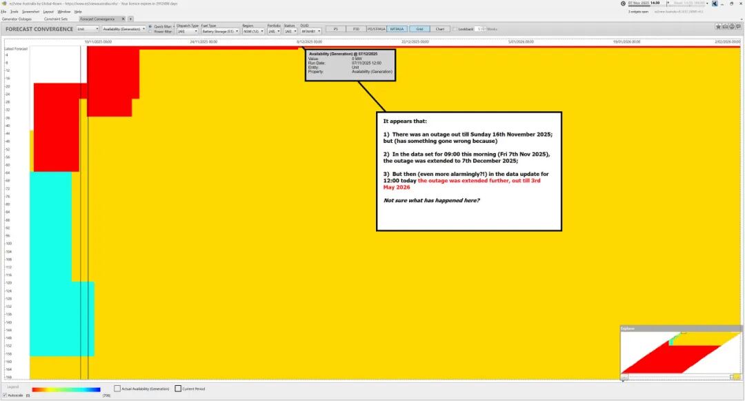但是(也許昨晚發(fā)生了什么事?)因為在今天早上(即2025年11月7日星期四 09:00 NEM時間)的數據更新中,停運時間被延長了。