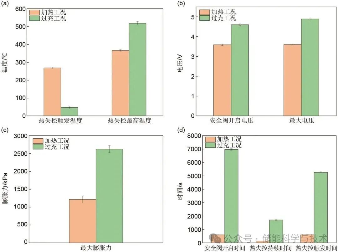 本研究系統(tǒng)性地比較分析了標(biāo)稱容量為185 Ah的大容量鈉離子電池在加熱和過(guò)充兩種不同濫用條件下的熱失控行為特性。實(shí)驗(yàn)結(jié)果表明:
