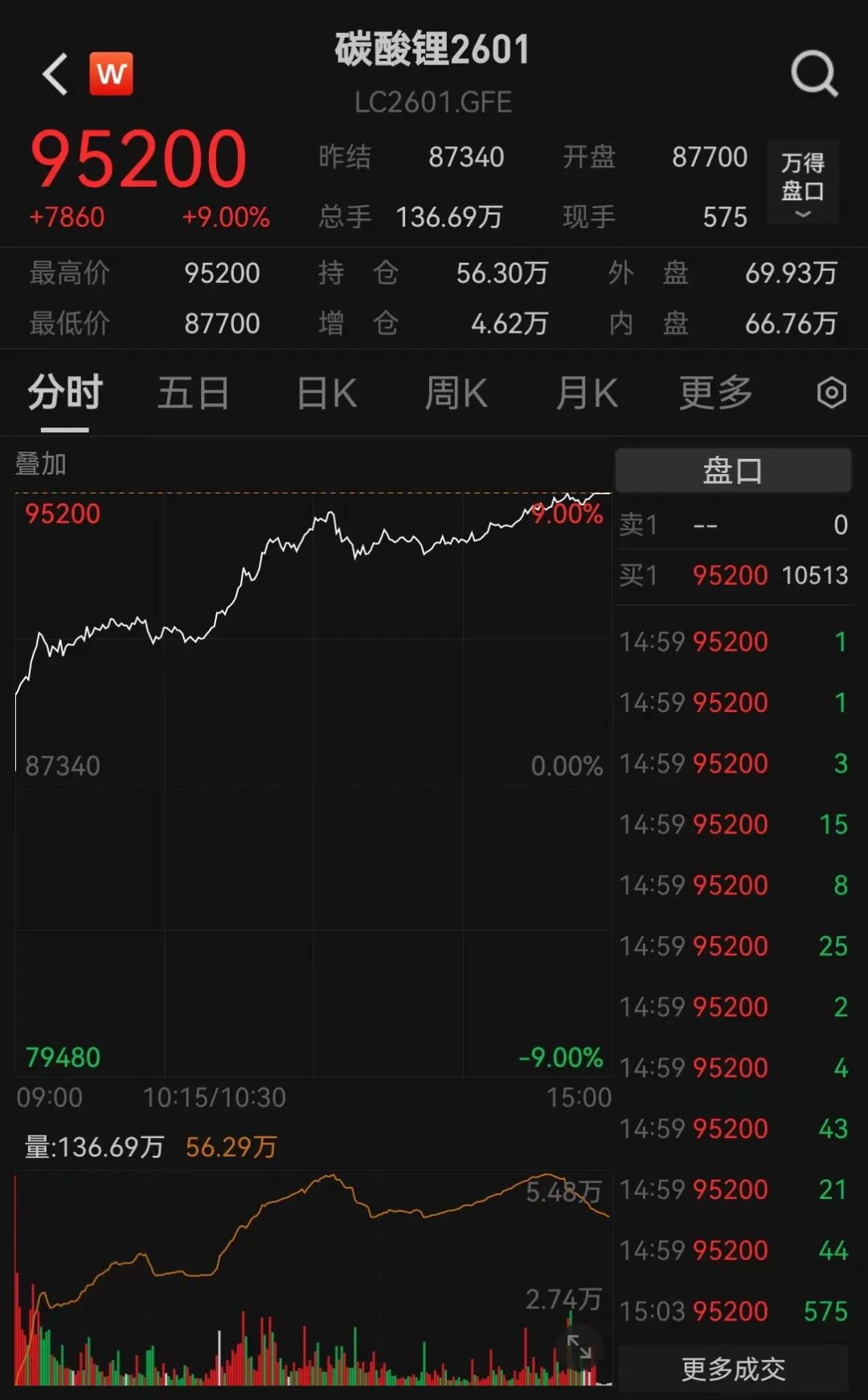11月17日,碳酸鋰期貨主力合約持續(xù)走高,截至收盤,該主力合約漲停,報(bào)95200元/噸,創(chuàng)2024年7月以來(lái)新高。