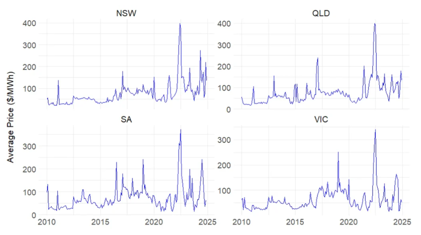 澳大利亞電力批發(fā)市場的價格波動性、平均水平及結構性變化,成為電力零售成本上漲的直接推動力。
