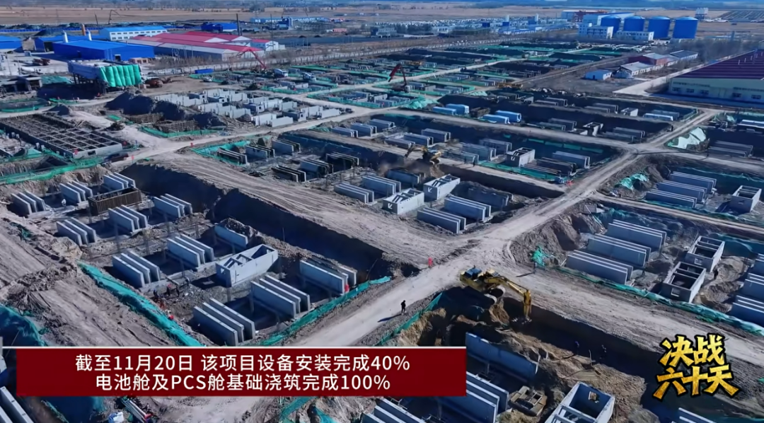 截至目前,該項目砌筑部分全部完工,設(shè)備安裝完成40%,電池艙及PCS艙基礎(chǔ)澆筑完成100%,電池艙吊裝完成52臺,PCS吊裝完成24臺,電纜溝澆筑完成70%。
