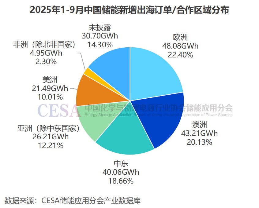 2025年1-9月,中國新型儲能新增裝機(jī)32.49GW/87.35GWh,同比增長36%(功率)/50.95%(容量),預(yù)計2025年全球新增裝機(jī)規(guī)模將超過90GW/220GWh,中美歐引領(lǐng)增長,中東、澳大利亞、非洲、印度為代表的新興市場加速崛起。