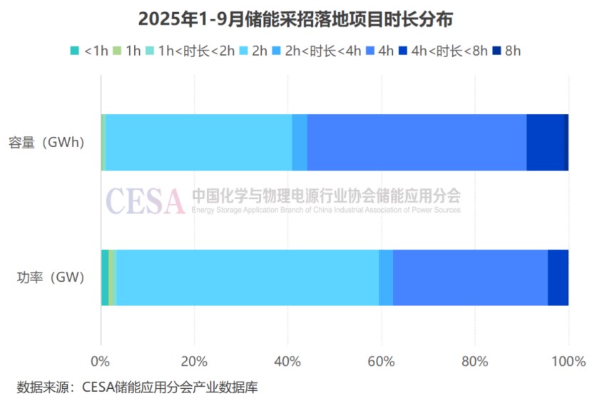 據(jù)CESA儲能應(yīng)用分會產(chǎn)業(yè)數(shù)據(jù)庫不完全統(tǒng)計,2025年1-9月,國內(nèi)73.2GW/209.76GWh采招落地的儲能項目中,明確時長的儲能項目為71.9GW/202.4GWh。