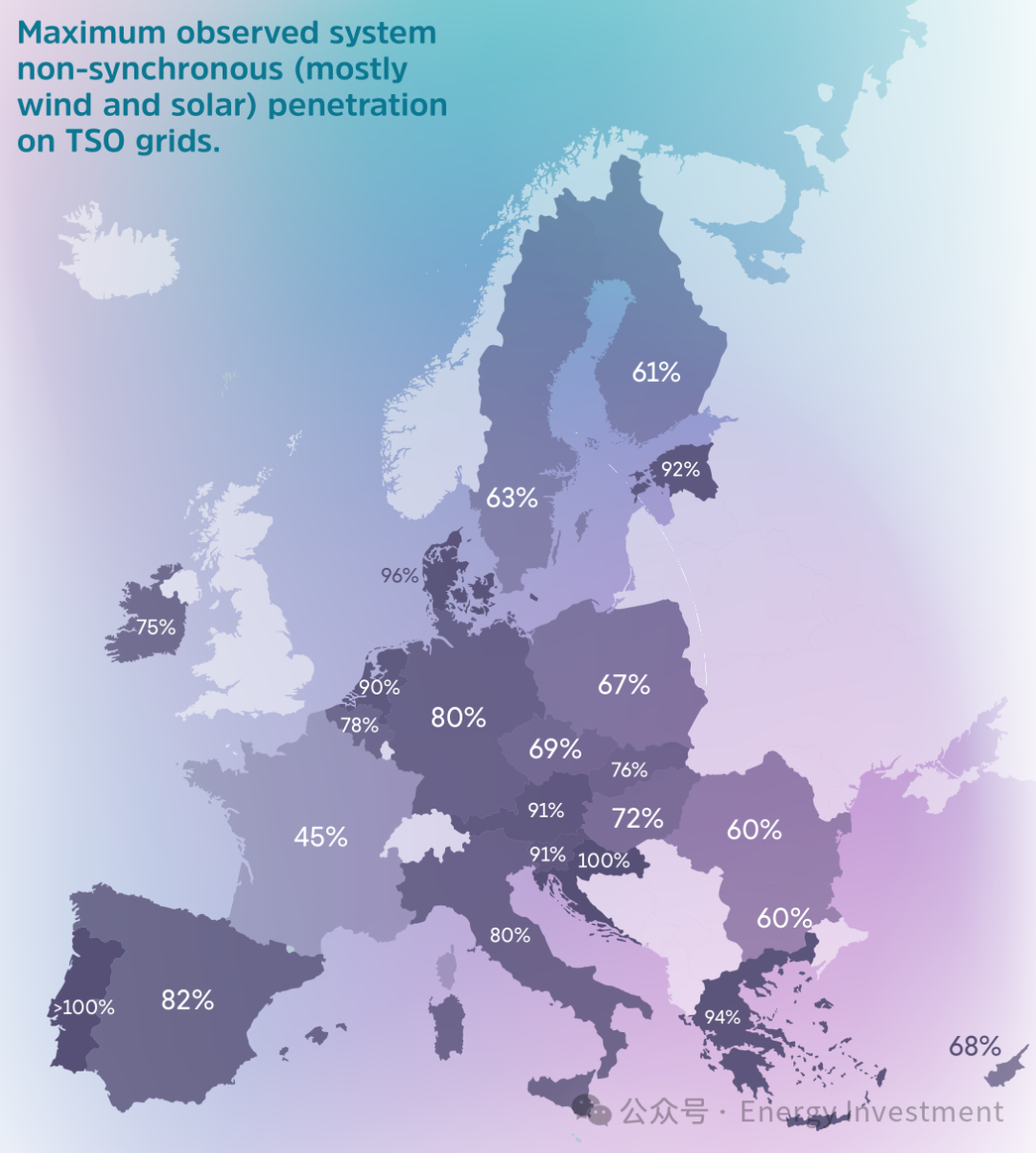 系統(tǒng)非同步滲透率的最大值在不同歐洲國(guó)家間存在顯著差異。分析顯示: