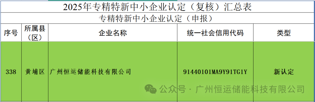 中國儲(chǔ)能網(wǎng)訊:近日,廣州市工業(yè)和信息化局正式公布2025年度“專精特新”中小企業(yè)認(rèn)定名單,廣州恒運(yùn)儲(chǔ)能科技有限公司憑借在儲(chǔ)能領(lǐng)域的深厚技術(shù)積累、精細(xì)運(yùn)營能力及突出創(chuàng)新表現(xiàn),成功躋身榜單!此前,公司投資建設(shè)的廣東凱金新能源2MW/4MWh用戶側(cè)儲(chǔ)能項(xiàng)目,已入選首批“廣東省先進(jìn)優(yōu)質(zhì)用戶側(cè)儲(chǔ)能示范項(xiàng)目”。兩大省級(jí)殊榮的加持,既是對(duì)恒運(yùn)儲(chǔ)能專業(yè)化發(fā)展路徑的高度認(rèn)可,更是對(duì)其在儲(chǔ)能細(xì)分賽道核心競爭力的權(quán)威認(rèn)證。