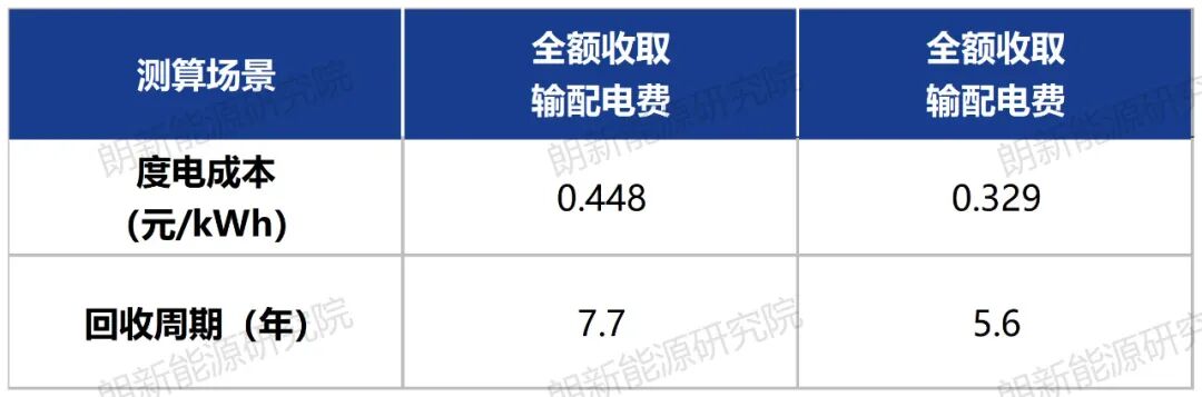 經(jīng)測算,發(fā)現(xiàn)風(fēng)光互補(bǔ)模式具備最優(yōu)的經(jīng)濟(jì)優(yōu)勢。項(xiàng)目對應(yīng)兩種輸配電費(fèi)收取方式測算度電成本分別為0.448元、0.329元,對應(yīng)回收周期分別為7.7年、5.6年,具備與配儲相接近的經(jīng)濟(jì)優(yōu)勢(表3)。