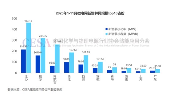 而色達(dá)項(xiàng)目、三江源項(xiàng)目的成功落地并非個(gè)例。據(jù)CESA儲(chǔ)能應(yīng)用分會(huì)產(chǎn)業(yè)數(shù)據(jù)庫統(tǒng)計(jì),2025年1-11月,國內(nèi)共有255個(gè)微電網(wǎng)項(xiàng)目并網(wǎng),新增裝機(jī)總規(guī)模為800.17MW/1781.65MWh,同比增長266.46(功率)/290.53%(容量)。