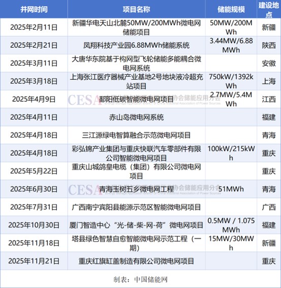 表 2025年1-11月國內(nèi)部分微電網(wǎng)并網(wǎng)項(xiàng)目統(tǒng)計(jì)