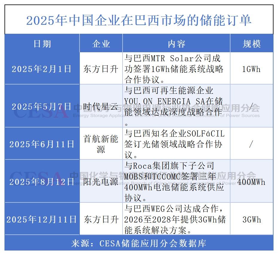 作為全球儲能技術(shù)與產(chǎn)能的核心輸出國,部分中國企業(yè)已率先嗅到市場紅利,通過戰(zhàn)略合作搶占先機(jī),成為巴西儲能市場布局的主力軍。