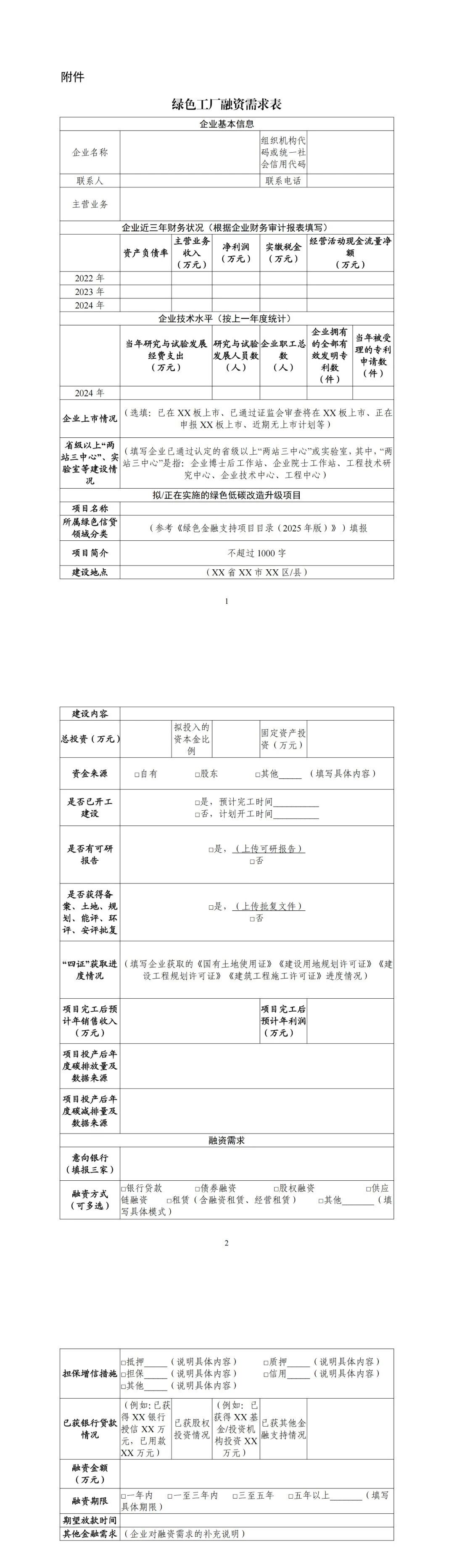(一)征集融資需求。省級工業(yè)和信息化主管部門組織綠色工廠通過工業(yè)節(jié)能與綠色發(fā)展管理平臺(https://green.miit.gov.cn/)在線填報項(xiàng)目融資需求(見附件),并對項(xiàng)目合規(guī)性和融資需求進(jìn)行審核,于每季度最后一個工作日前推薦至工業(yè)和信息化部,如有重大項(xiàng)目融資需求可隨時報送。