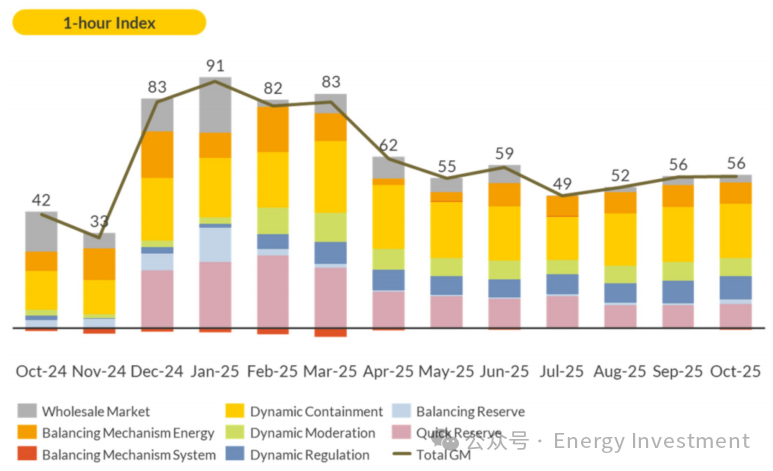 英國(guó)儲(chǔ)能項(xiàng)目的收入結(jié)構(gòu)正在經(jīng)歷從“合同為王”到“交易致勝”的深刻轉(zhuǎn)型??稍偕茉吹牟▌?dòng)性為市場(chǎng)帶來(lái)了前所未有的套利機(jī)會(huì),也對(duì)電網(wǎng)平衡提出了更高要求。這使得儲(chǔ)能資產(chǎn)的價(jià)值不再僅僅體現(xiàn)在其“備用”的身份,更體現(xiàn)在其作為市場(chǎng)“交易員”的智慧。基于Aurora對(duì)超過(guò)100個(gè)運(yùn)營(yíng)資產(chǎn)的分析,我們可以清晰地看到一個(gè)由批發(fā)市場(chǎng)、平衡機(jī)制和頻率響應(yīng)服務(wù)構(gòu)成的多元化收入“堆棧”正在形成。