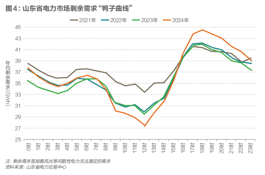 零邊際成本特性削弱邊際成本定價信號的有效性。隨著新能源占比不斷提高,電力市場價格形成機制被深刻改變。新能源的邊際成本接近零,使得系統(tǒng)出清價格在高比例新能源出力時頻繁觸底。部分地區(qū)現(xiàn)貨市場“鴨子曲線”演化為“峽谷曲線”——午間光伏出力高峰時段電價接近地板價,而傍晚光伏出力消失、負荷攀升,火電調(diào)峰成本推高電價(見圖4,以山東市場為例)。短期看,這種價格波動削弱了價格信號的穩(wěn)定性;長期看,平均市場價格下行壓縮了火電與儲能等可調(diào)節(jié)機組的盈利空間,影響系統(tǒng)投資激勵與可靠性。