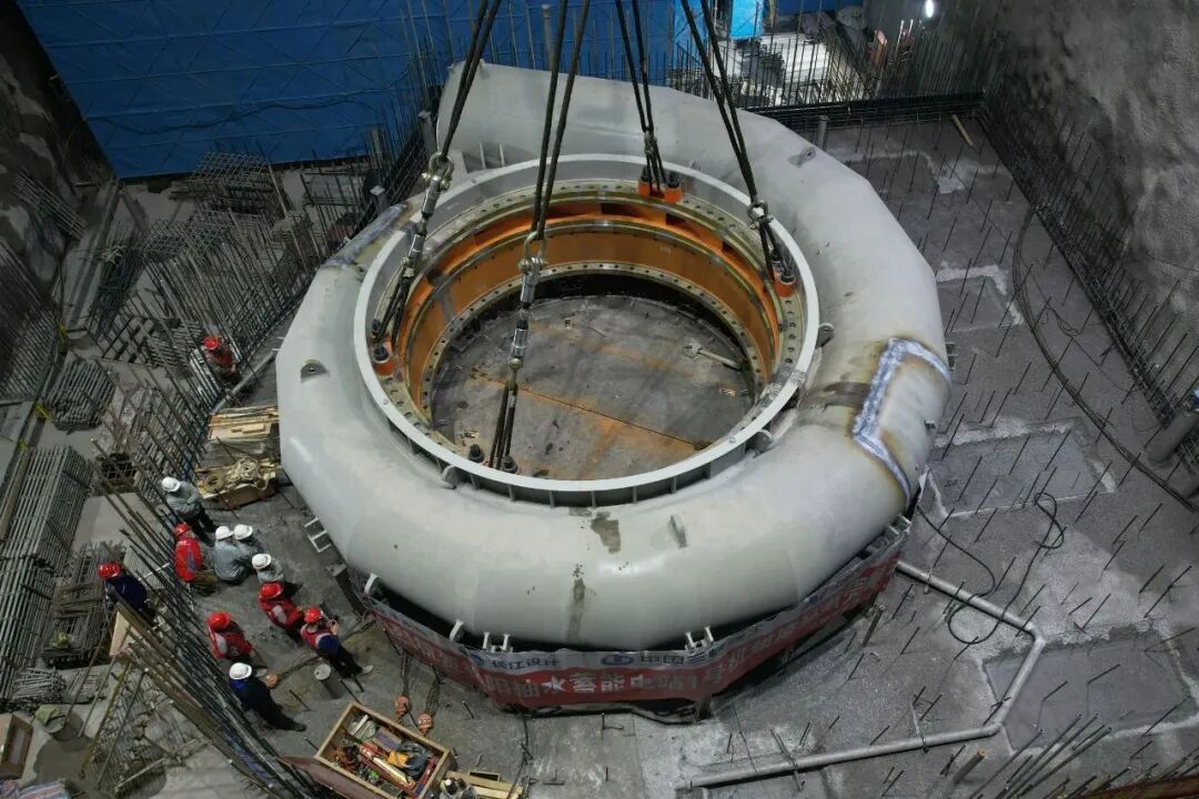 中國(guó)儲(chǔ)能網(wǎng)訊:2025年12月9日,浙江松陽(yáng)抽水蓄能電站迎來(lái)重大建設(shè)節(jié)點(diǎn)——首臺(tái)機(jī)組座環(huán)蝸殼吊裝完成。在安裝間通過(guò)試吊檢查后,重達(dá)211噸的座環(huán)蝸殼以平穩(wěn)、緩慢的姿態(tài)精準(zhǔn)落位至機(jī)坑設(shè)計(jì)位置,為后續(xù)機(jī)組安裝及首臺(tái)機(jī)組發(fā)電目標(biāo)奠定了堅(jiān)實(shí)基礎(chǔ)。