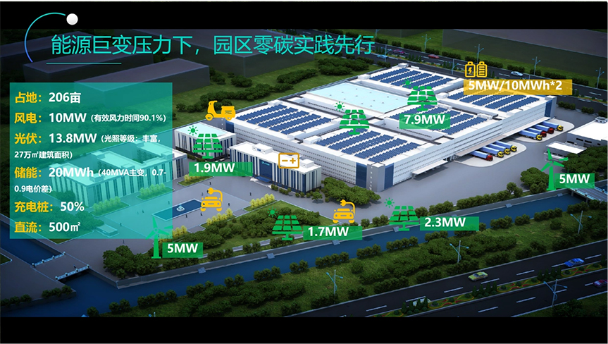 南網(wǎng)科技公司以浙江海鹽某園區(qū)為示范,推出“慧享”園區(qū)儲(chǔ)能協(xié)同運(yùn)營(yíng)方案,構(gòu)建“源網(wǎng)荷儲(chǔ)一體化”智能微網(wǎng)體系。方案集成風(fēng)光儲(chǔ)充自治微電網(wǎng)等技術(shù),建設(shè)7.15MW風(fēng)力發(fā)電、5.03MWp光伏發(fā)電、5MW/10MWh儲(chǔ)能示范站等設(shè)施,應(yīng)用“日前-日內(nèi)實(shí)時(shí)滾動(dòng)”模型調(diào)度,以經(jīng)濟(jì)綠色、高效消納、平抑波動(dòng)為目標(biāo),開(kāi)展園區(qū)綜合能源智慧管理與運(yùn)營(yíng)。項(xiàng)目投運(yùn)后年發(fā)綠電2000萬(wàn)度,節(jié)約原火電能源30%,減碳2萬(wàn)噸,2024年實(shí)現(xiàn)100%碳中和,可再生能源消納率提10%以上,還能降企業(yè)成本、帶動(dòng)地方經(jīng)濟(jì),為園區(qū)綠色轉(zhuǎn)型提供可復(fù)制已推廣的源網(wǎng)荷儲(chǔ)一體化范式。未來(lái)將繼續(xù)推進(jìn)“慧享2.0”升級(jí),實(shí)現(xiàn)產(chǎn)業(yè)園區(qū)深度減排,助力零碳園區(qū)建設(shè)。