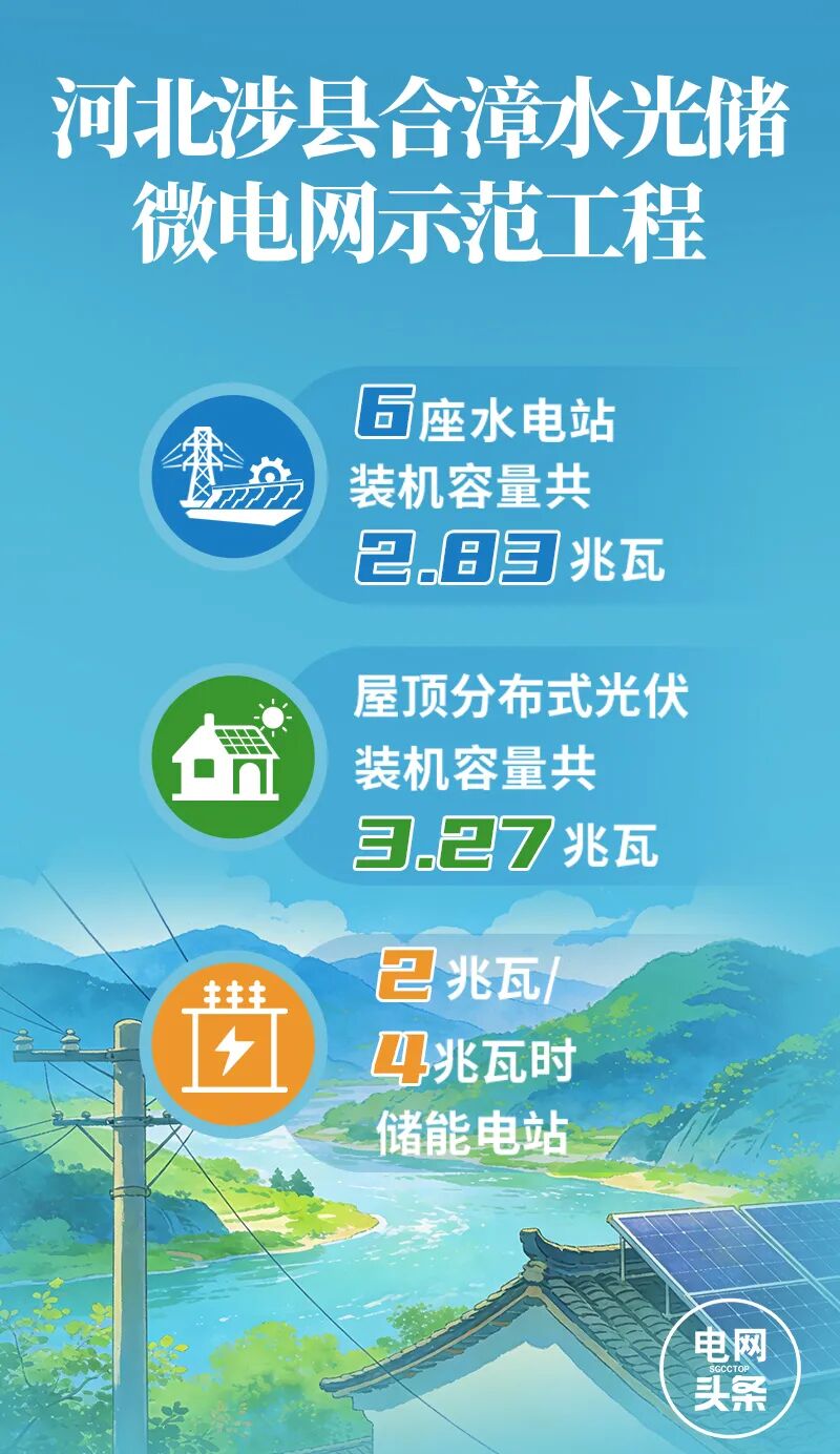 董紅亮口中的智能微電網(wǎng),是2023年國(guó)網(wǎng)河北電力圍繞新型電力系統(tǒng)建設(shè),結(jié)合當(dāng)?shù)刈匀毁Y源稟賦,在涉縣合漳鄉(xiāng)試點(diǎn)開(kāi)展的河北首個(gè)十兆瓦級(jí)水光儲(chǔ)智能微電網(wǎng)示范工程。該工程利用當(dāng)?shù)刎S富的光伏發(fā)電、水電資源,通過(guò)優(yōu)化電網(wǎng)結(jié)構(gòu),自主開(kāi)發(fā)水光儲(chǔ)能量管理系統(tǒng),構(gòu)建“水-光-儲(chǔ)”一體化控制架構(gòu),推動(dòng)綠色電力與新型儲(chǔ)能系統(tǒng)協(xié)同互動(dòng)。2024年4月,工程建成投運(yùn),如今,合漳微電網(wǎng)已穩(wěn)定運(yùn)行一年多了。