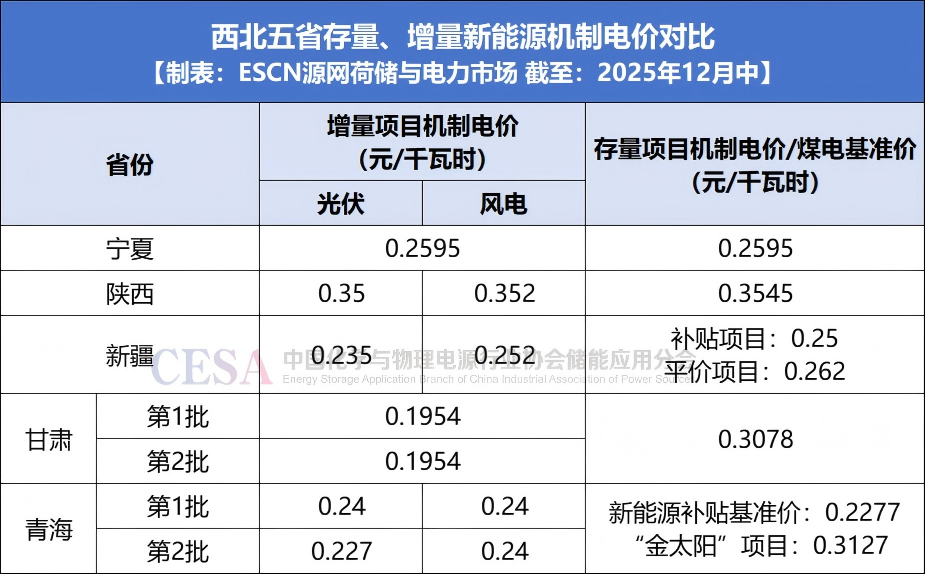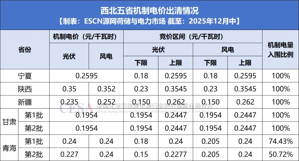 截至12月中旬,西北五省中,寧夏、陜西、新疆三省公布了第一批競價結(jié)果,即2025年下半年并網(wǎng)的新能源項目;甘肅和青海分別公布了兩批競價結(jié)果,包含2025年下半年并網(wǎng)和2026年并網(wǎng)的新能源項目。