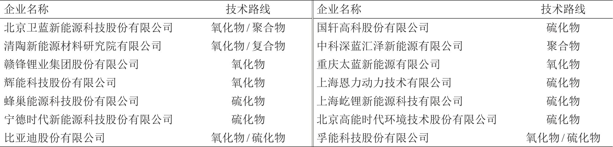 表2 我國典型企業(yè)的固態(tài)電池技術(shù)路線