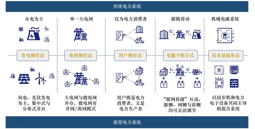 圖2 新型電力系統(tǒng)與傳統(tǒng)電力系統(tǒng)的對(duì)比