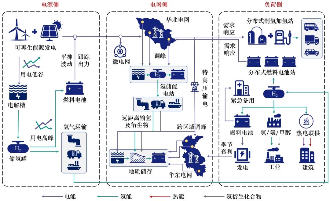 圖3 氫儲(chǔ)能在新型電力系統(tǒng)“源網(wǎng)荷”的應(yīng)用場(chǎng)景