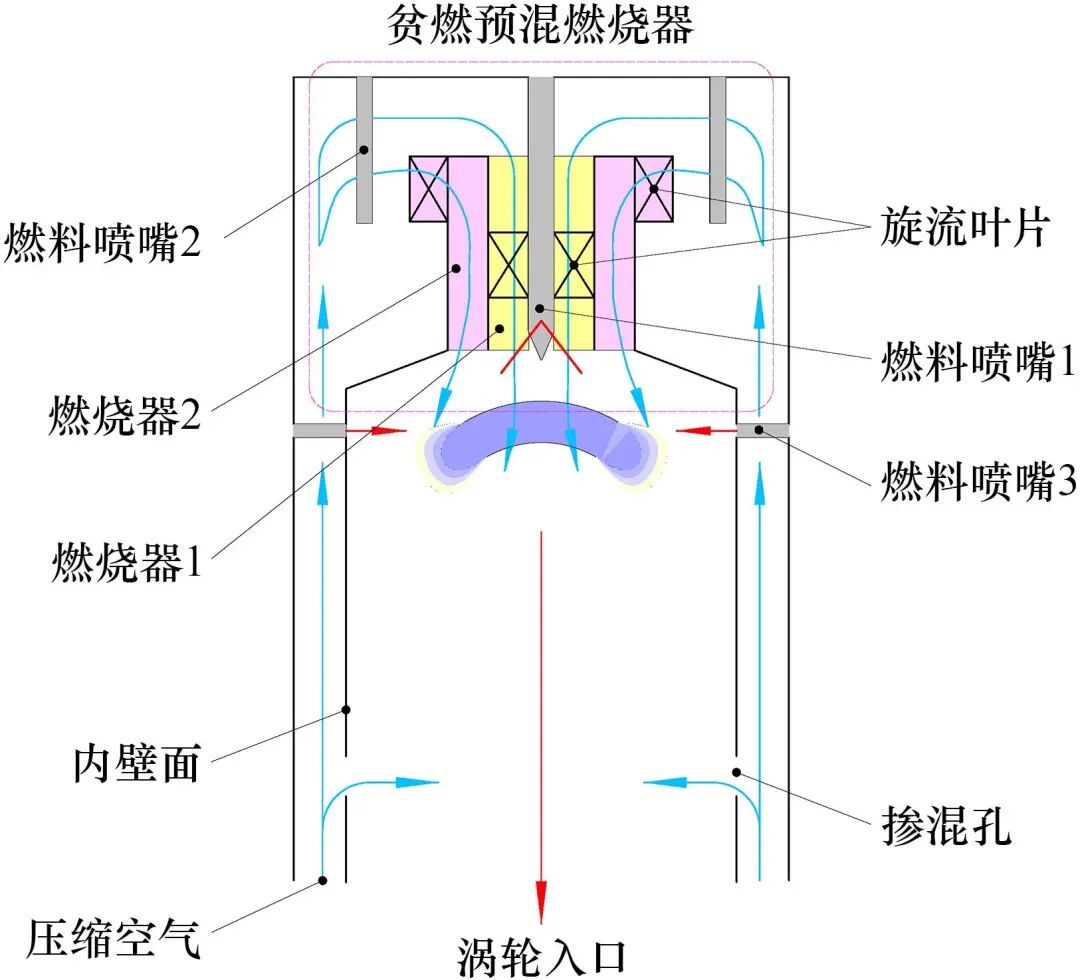 日本首次在50 kW微型燃?xì)廨啓C(jī)上實(shí)現(xiàn)了雙燃料燃燒發(fā)電,產(chǎn)生44.4 kW功率電力,燃燒效率在89%~96%。日本IHI公司在2 MW的燃?xì)廨啓C(jī)上實(shí)現(xiàn)了摻氨混燒,摻燒比例高達(dá)70%,并在旋流燃燒器中實(shí)現(xiàn)了低NOx排放(見圖1)。近期,三菱電機(jī)株式會(huì)社宣布開始研發(fā)世界首個(gè)氨氣40兆瓦級燃?xì)廨啓C(jī)系統(tǒng),該系統(tǒng)以純氨為燃料,目標(biāo)在2025年左右實(shí)現(xiàn)商業(yè)化。美國已與IHI公司合作,共同制定燃?xì)廨啓C(jī)路線圖。就目前來講,國內(nèi)的相關(guān)研究較少,偏向于理論研究和基礎(chǔ)研究。