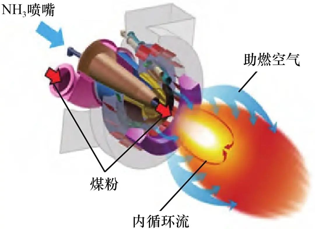圖2 氨/煤共燃旋流燃燒器示意圖