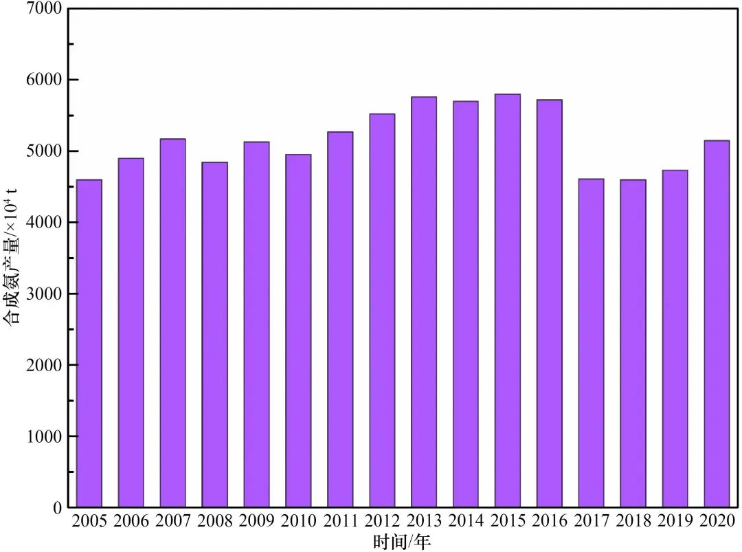 圖4 我國合成氨產(chǎn)量(2005—2020年)
