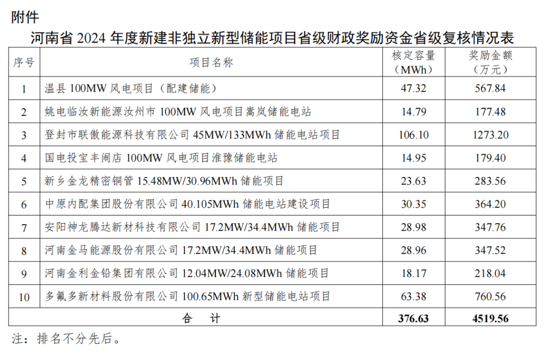 附件:河南省2024年度新建非獨(dú)立新型儲(chǔ)能項(xiàng)目省級(jí)財(cái)政獎(jiǎng)勵(lì)資金省級(jí)復(fù)核情況表