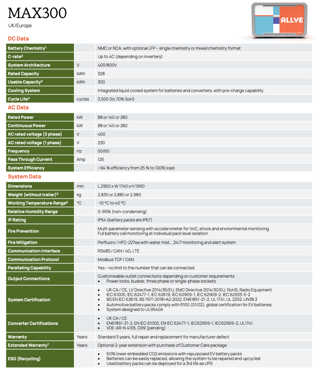 隨著該系統(tǒng)的推出,Allye的MAX產(chǎn)品矩陣已覆蓋300kWh至1.5MWh的完整功率段: